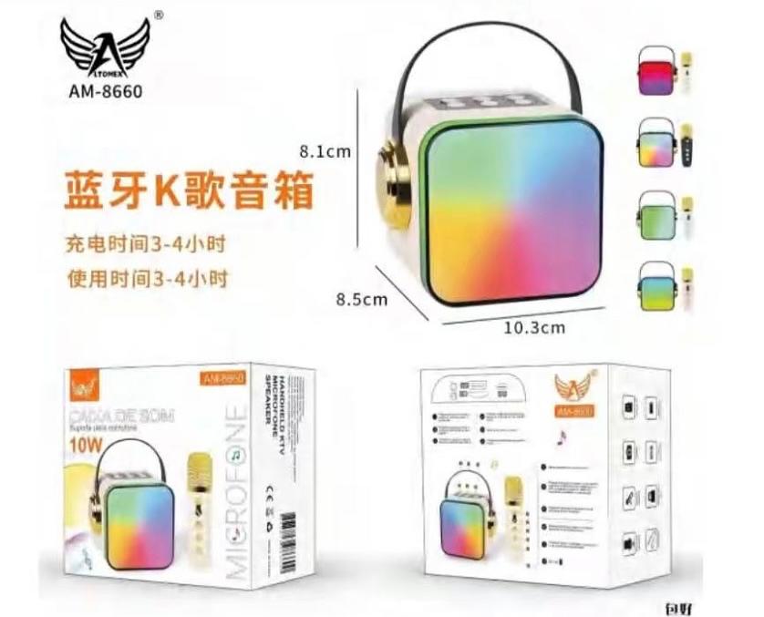 Caixa de som 1. Possui 1 microfone • 2. Tempo de carregamento: 3 à 4 horas AM8660