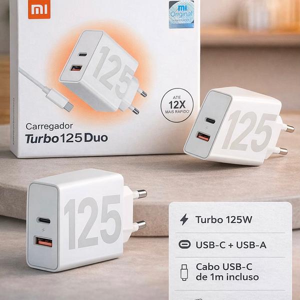 Carregador Turbo 125W USB-C + USB-A Cabo USB-C de 1m incluso