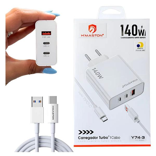 Carregador Turbo140w + Cabo Tipo-c Com 3 Saídas H'maston Y743