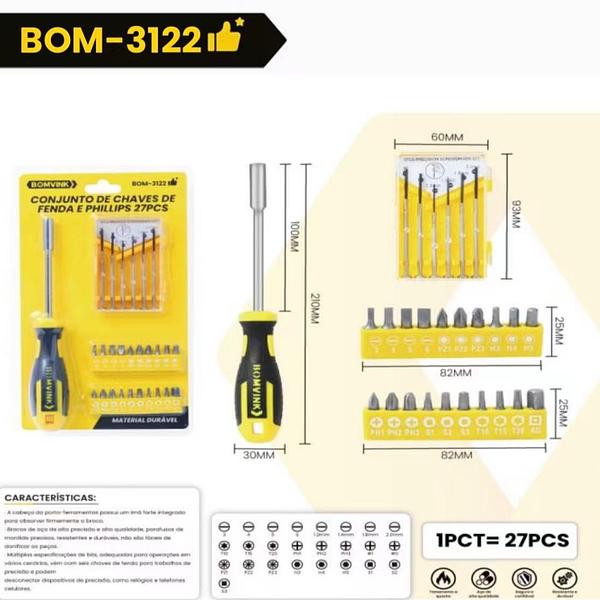 CONJUNTO DE CHAVES DE FENDA E PHILLIPS 27PCS BOM3122
