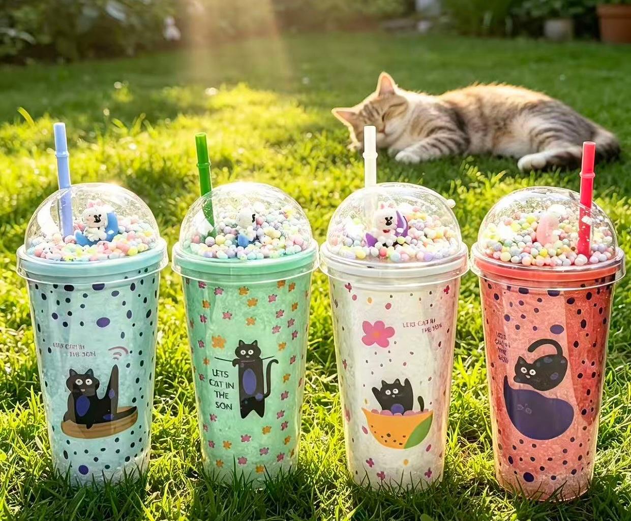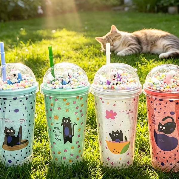 Copo Parede Dupla Glitter Canudo Acrílico Personalizado 450ML QW27