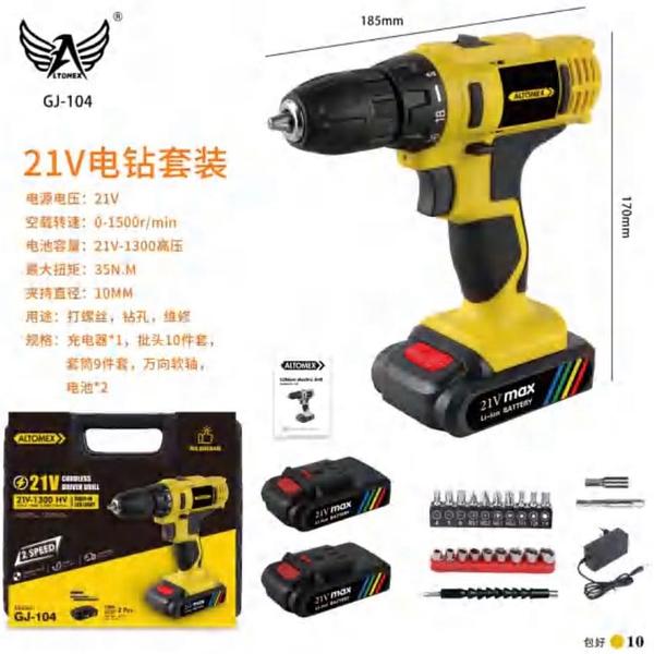 Parafusadeira Furadeira 2 Baterias 21V Torque máximo: 35NM . Velocidade máxima: 1500r/min GJ104