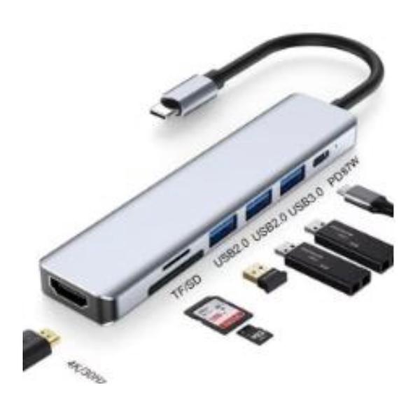 Hub Cabo Adaptador Multiportas Usb-c7 Em 1 Hdmi 4k Usb W1162