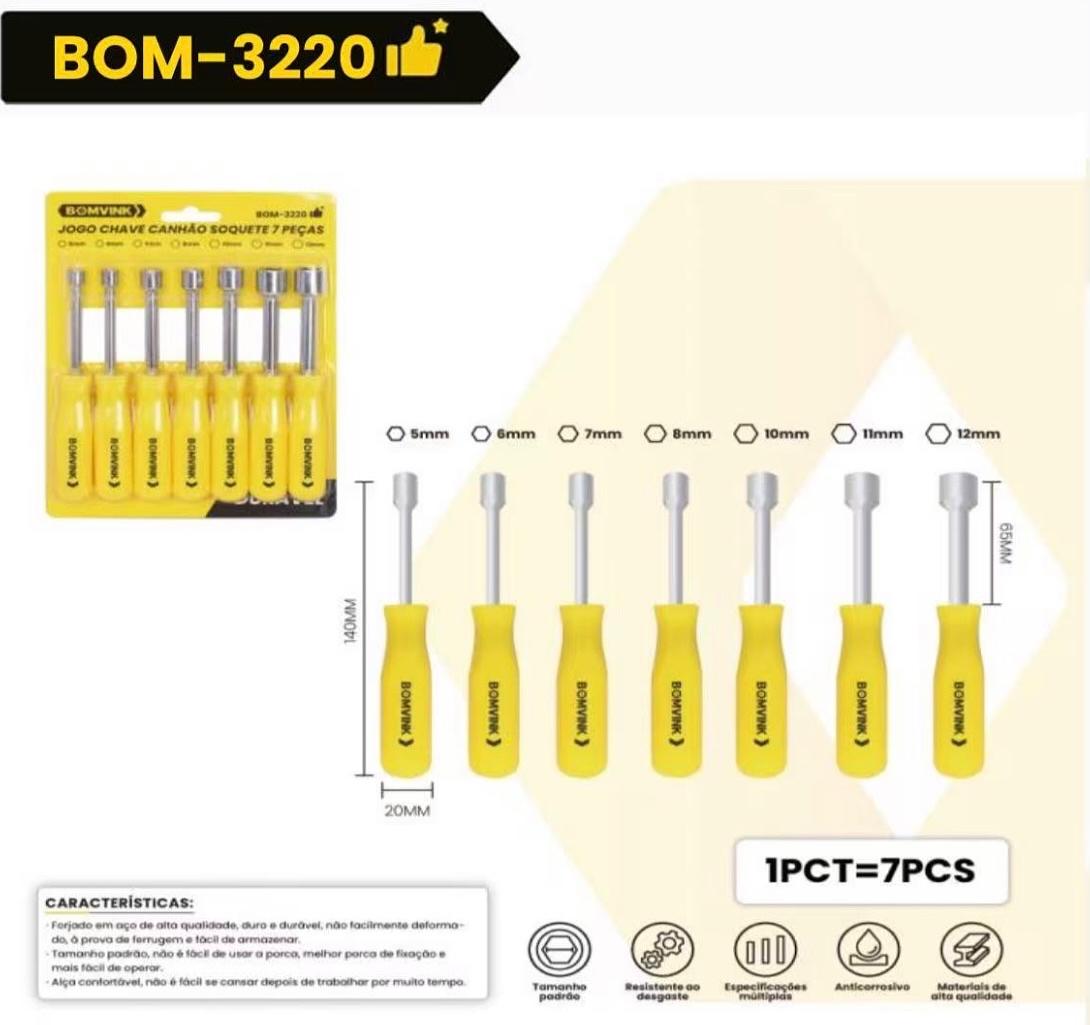 JOGO CHAVE CANHÃO SOQUETE 7 PEÇAS BOM3220
