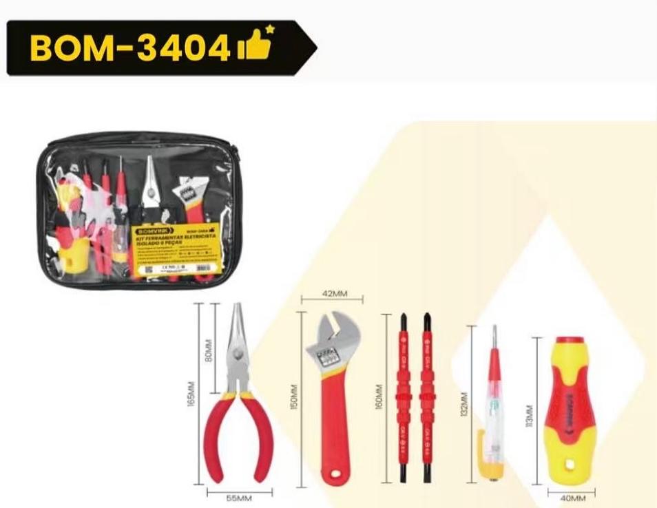 KIT FERRAMENTAS ELETRICISTA ISOLADO 6 PEÇAS BOM3404