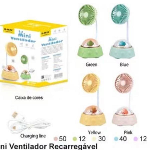Mini Ventilador Recarregável Yellow 30 Pink • 40 • 12 • Potência: 3W •Tamanho:8.7x8.7x13.4cm • Bateria: 400 mAh •Com LED • Cabo USB BMF1087