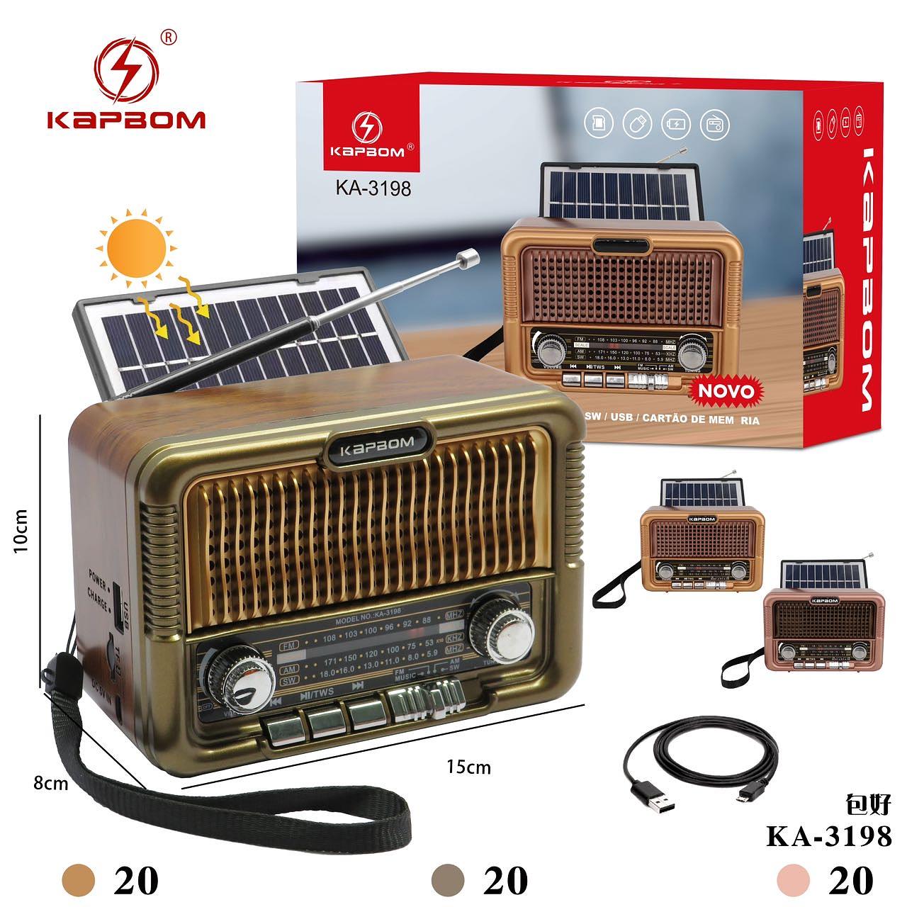 Rádio AM/FM USB Bluetooth corregamento solar KA-3198