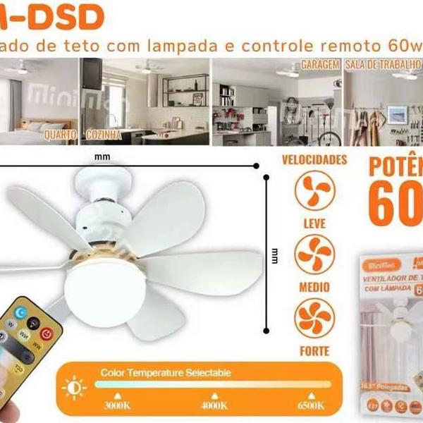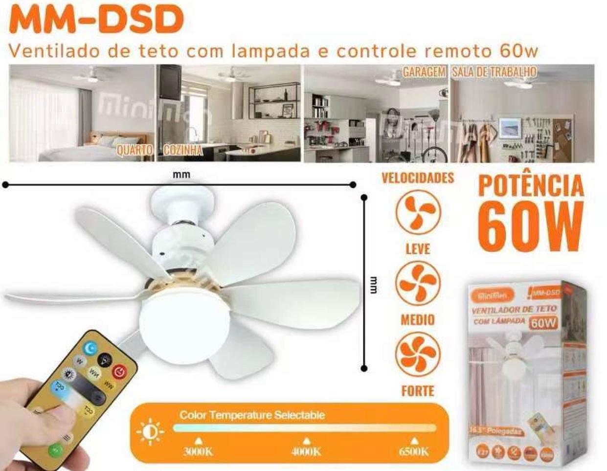 Ventilado de teto com lampada e controle remoto 60w MMDSD